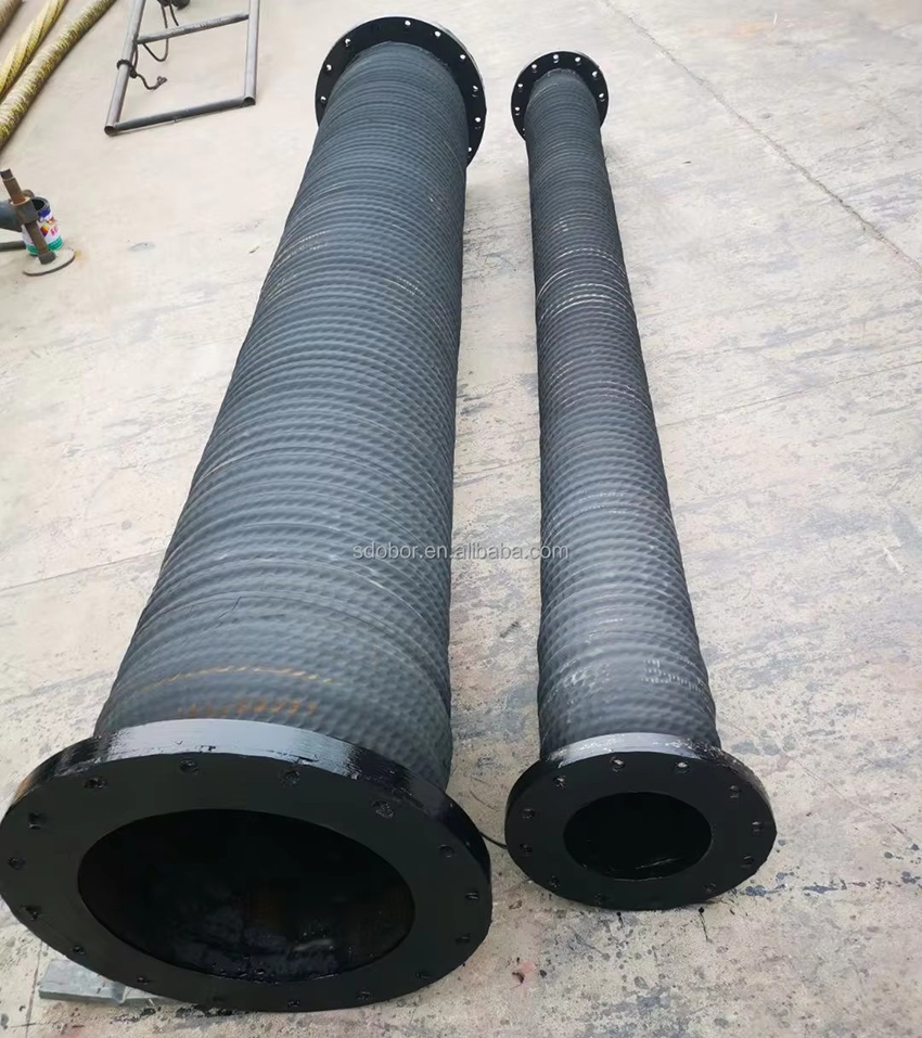 The dredging rubber hose is the core component connecting the sludge discharge pipeline in dredging projects. It is responsible for tasks such as port dredging and waterway maintenance, and can reduce the swaying caused by waves, making the medium flow more smoothly in the pipeline. It achieves rapid installation through flange connection and uses a large-diameter design (with the maximum inner diameter of 1000 millimeters) and a steel wire mesh structure to reduce the pipeline swaying caused by wave impact, ensuring the efficient transportation of sludge, sediment, and other media.