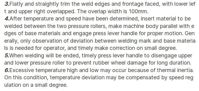 OBOR Geomembrane welding machine can weld geomembrane of various thickness and are applicable for welding of all thermal-fused material such as HDPE, LDPE, EVA, PVC, ECB, PP and so on. The control of this series of welding machine adopts PID automatic thermostatic control with high control accuracy and low temperature fluctuation; speed control adopts PWM automatic voltage and speed regulation circuit, driven by DC servo motor, with great output torque and the operating is stable. It can maintain a constant speed on the condition of creeping, vertical creeping and variable road load. Also this series of welding machine is stable in performance despite of external temperature and voltage variation.
