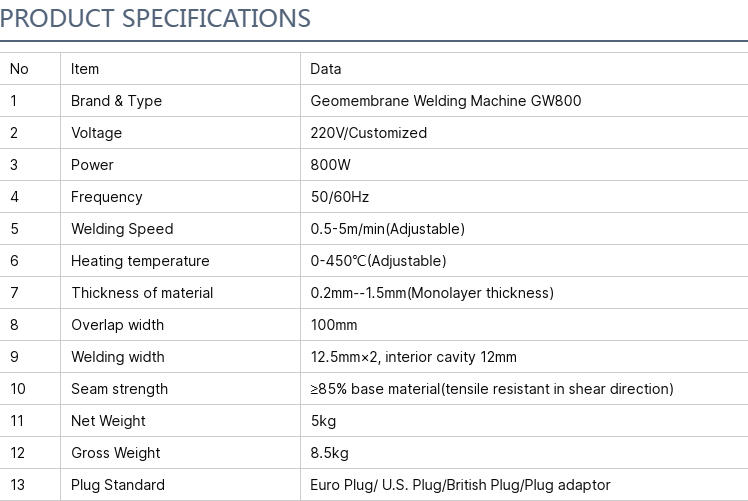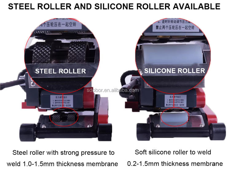 OBOR Geomembrane welding machine can weld geomembrane of various thickness and are applicable for welding of all thermal-fused material such as HDPE, LDPE, EVA, PVC, ECB, PP and so on. The control of this series of welding machine adopts PID automatic thermostatic control with high control accuracy and low temperature fluctuation; speed control adopts PWM automatic voltage and speed regulation circuit, driven by DC servo motor, with great output torque and the operating is stable. It can maintain a constant speed on the condition of creeping, vertical creeping and variable road load. Also this series of welding machine is stable in performance despite of external temperature and voltage variation.